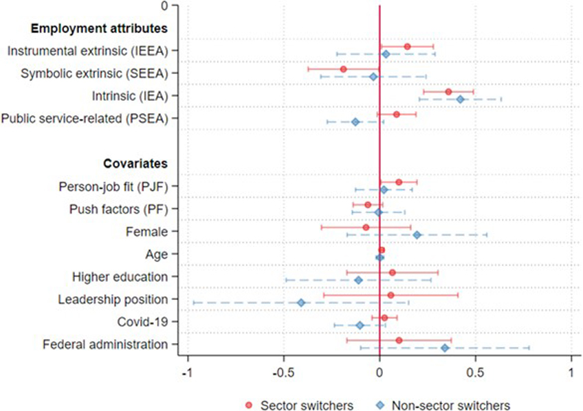 En el nostre estudi recent (accés obert: https://onlinelibrary.wiley.com/doi/10.1111/puar.70047), analitzem amb més detall dos grups diferenciats de persones que canvien de feina: els canviadors de sector, que passen de l’ocupació privada a la pública, i els no canviadors de sector, que es mouen entre llocs de treball dins del mateix sector públic. A partir de dades originals d’una enquesta a funcionaris suïssos després de la seva incorporació, explorem com diferents atributs del lloc de treball —extrínsecs, intrínsecs i relacionats amb el servei públic— influeixen en la seva percepció de l’atractiu de l’ocupador.